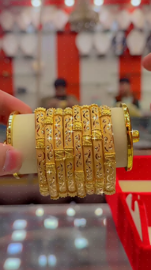 Exquisite Gold-Toned Bangle with Intricate Traditional Filigree and Textured Detailing