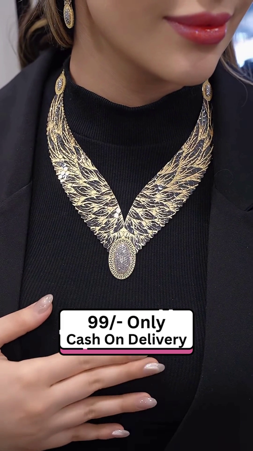 Intricate Gold-Toned Necklace and Earrings Set with Kundan and Gemstone Accents – Traditional Indian Jewelry -