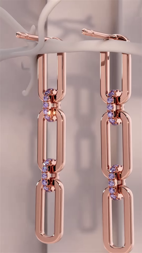 Modern Rose Gold-Toned Bracelet with Geometric Links and Pavé Embellishments -